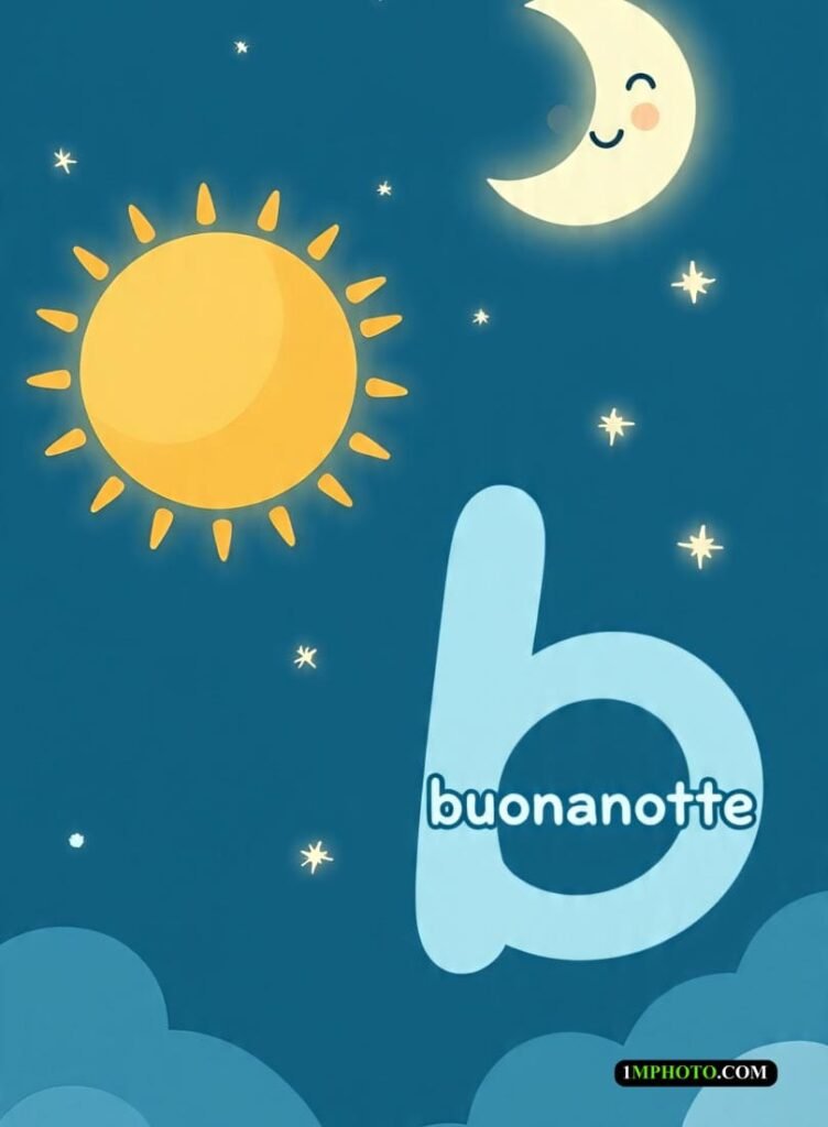 cielo è blu con stelle e sopra è scritto “Buonanotte